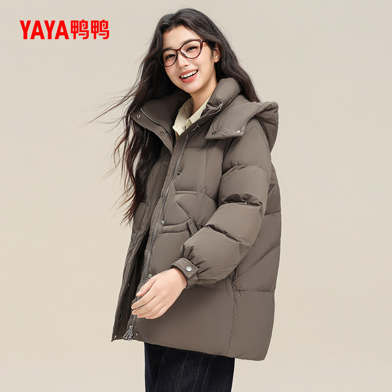 鸭鸭羽绒服女士2025冬季短款时尚连帽韩版宽松加厚鸭绒保暖外套S
