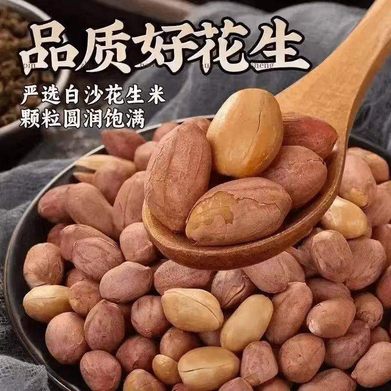 新鲜红皮带壳生花生四粒红花生米农家自种晒干货高产花生红皮花生