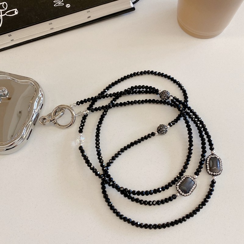 手机斜挎挂绳简约串珠吊绳网红款七彩水晶长款手机链夏日结实防摔手机配饰女高端diy挂脖防丢电话挂饰送夹片
