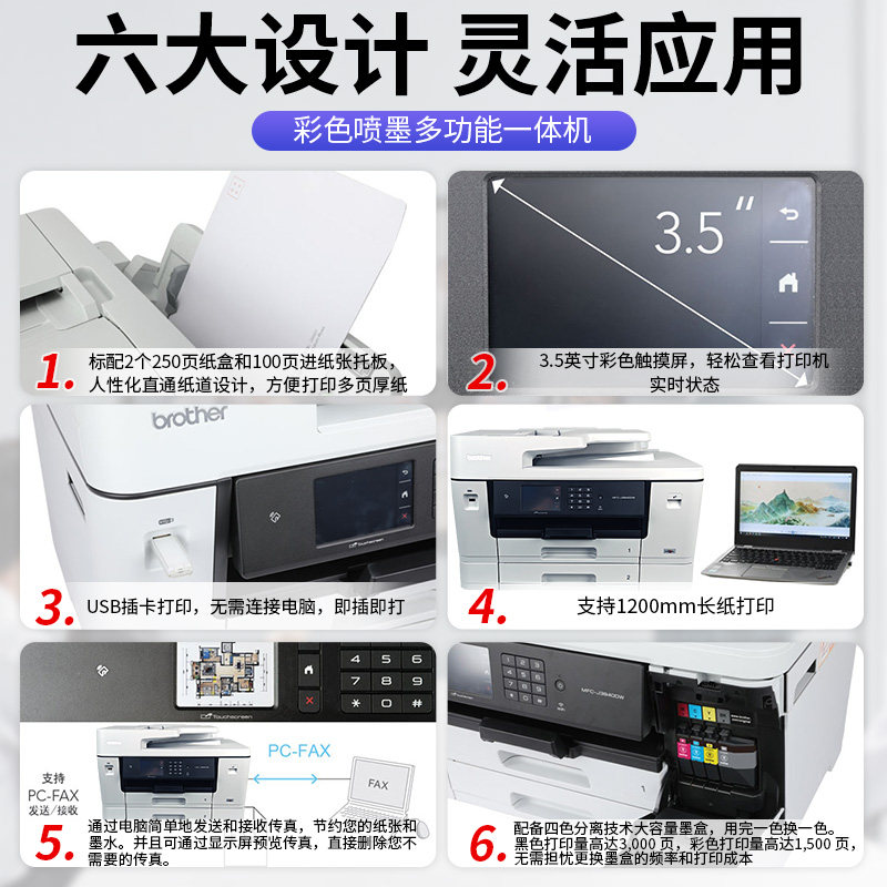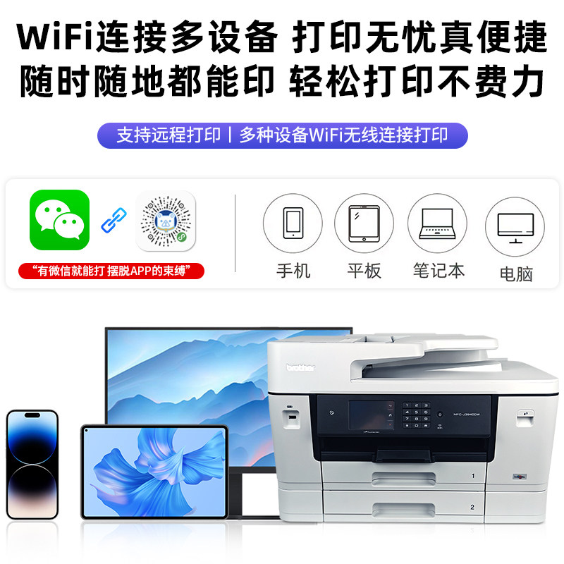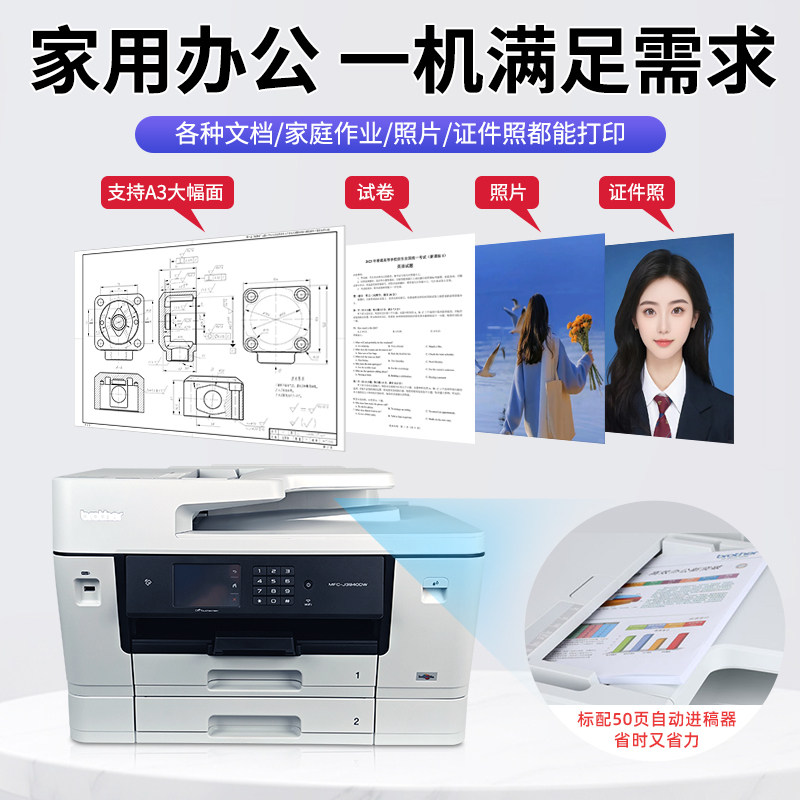 兄弟J3940DW喷墨多功能自动双面打印机复印扫描传真四合一手机wif