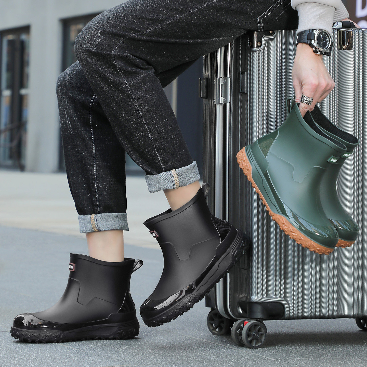 英伦时尚中筒雨鞋男士户外穿防滑钓鱼洗车防水鞋厨房工作轻便雨靴