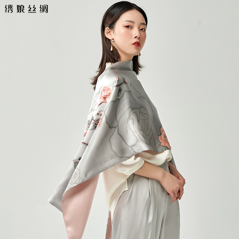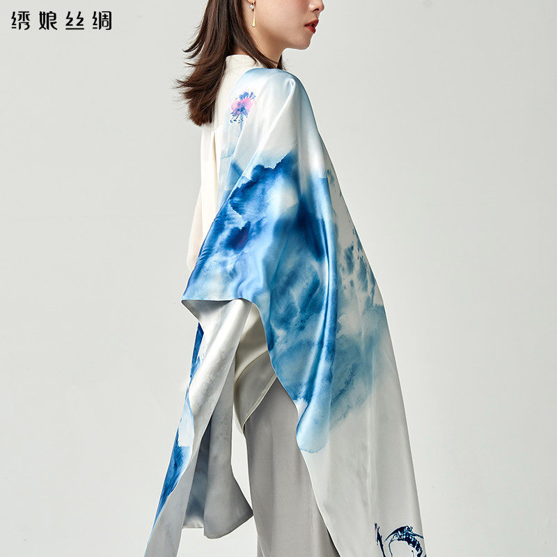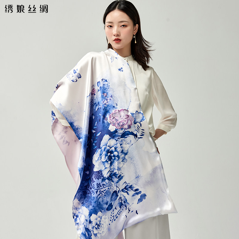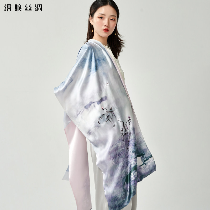 绣娘真丝围巾女士新款旗袍长巾披肩国风桑蚕丝丝巾双层高档外搭
