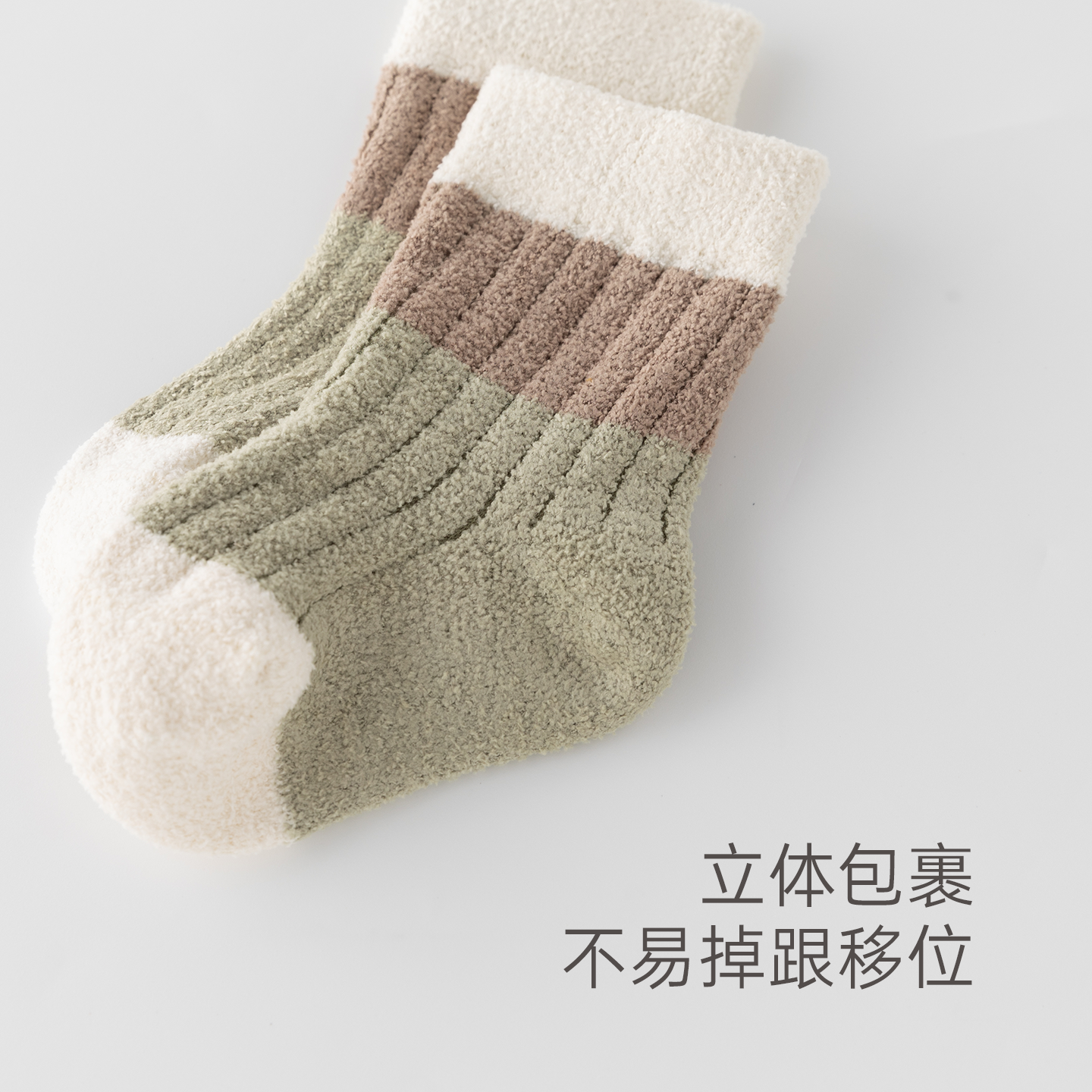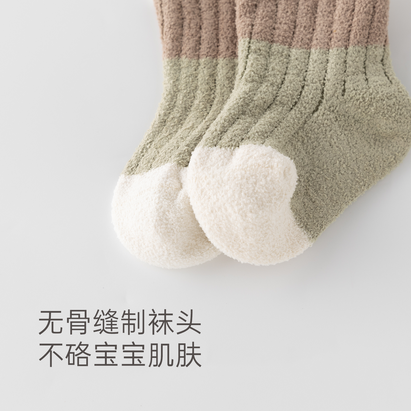 【3双装】 新生儿保暖袜子秋冬季婴儿条纹加绒袜宝宝不勒脚弹力袜