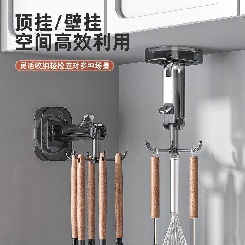 旋转挂钩多功能勺子收纳架置物架壁挂式厨具架免打孔厨房挂架免钉