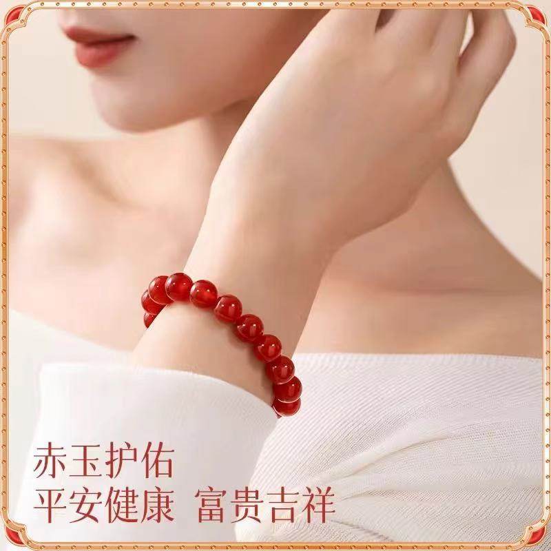 天然红玛瑙手串女款转运珠子玉髓佛珠玛瑙手链男女款情侣水晶手链