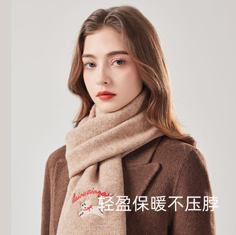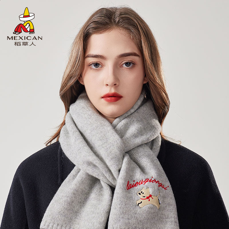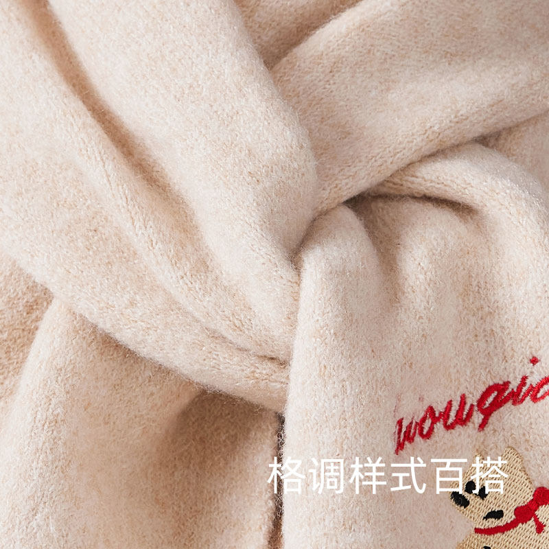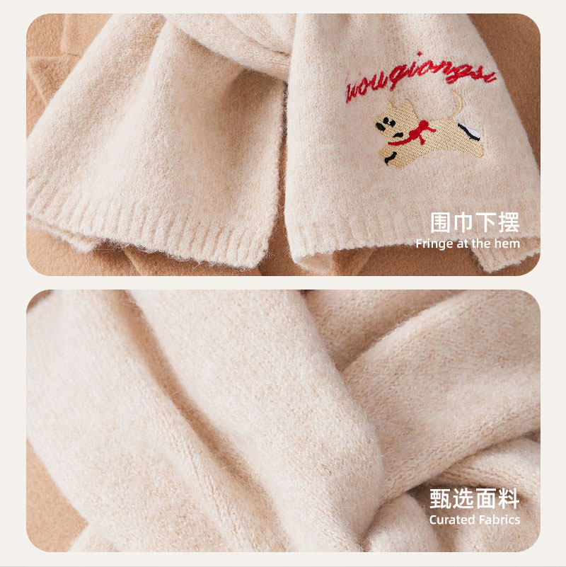 稻草人围巾女2025新款秋冬季保暖围脖卡通小狗羊毛纯色针织围巾男