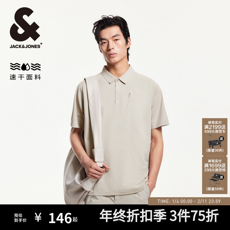 【速干压胶】杰克琼斯男装士polo衫拉链口袋短袖T恤爸爸高端25秋