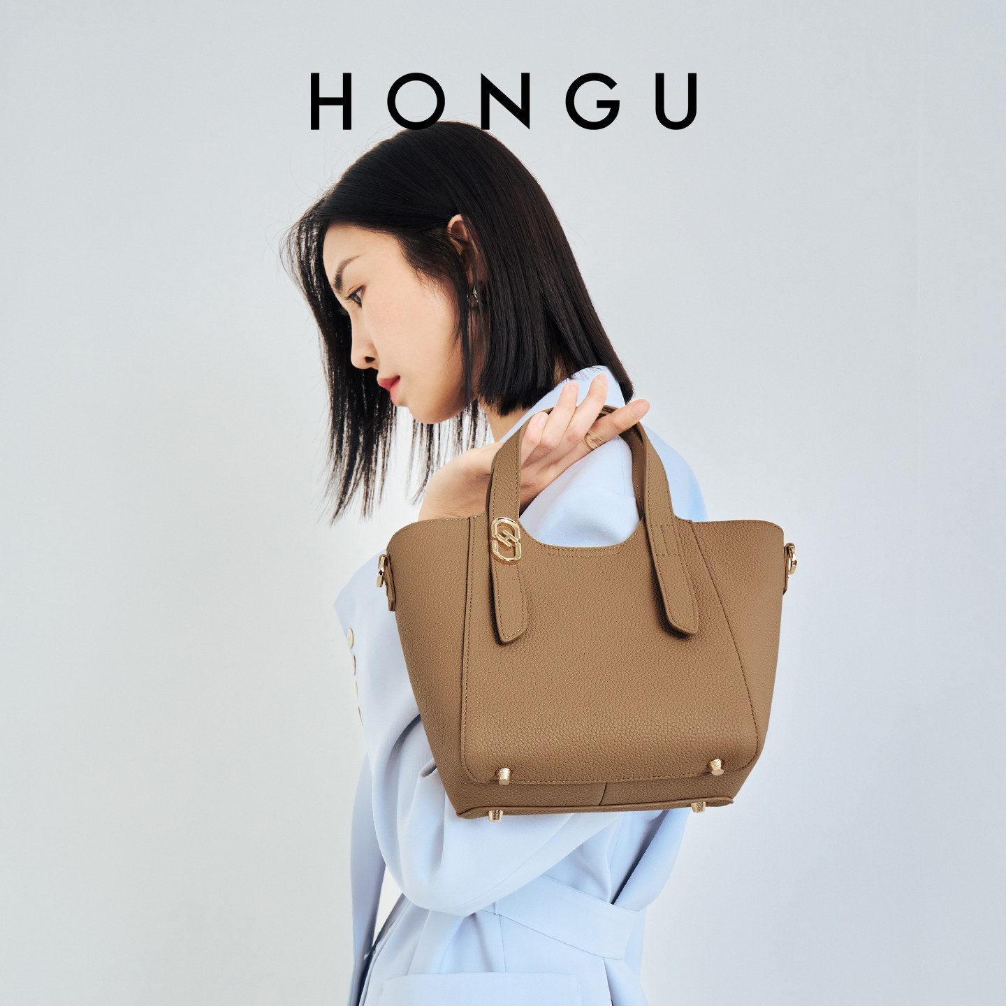 红谷包包女新款质感牛皮单肩手提包女款通勤菜篮子包时尚斜挎女包