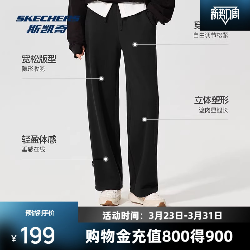 斯凯奇运动裤春季女士休闲可调节腰绳舒适透气时尚柔软长裤