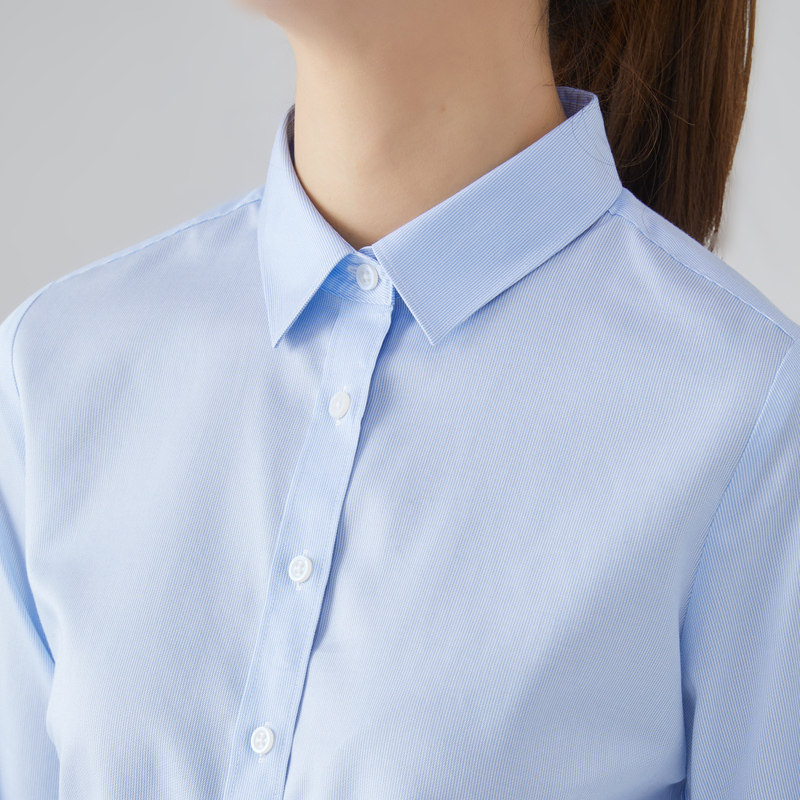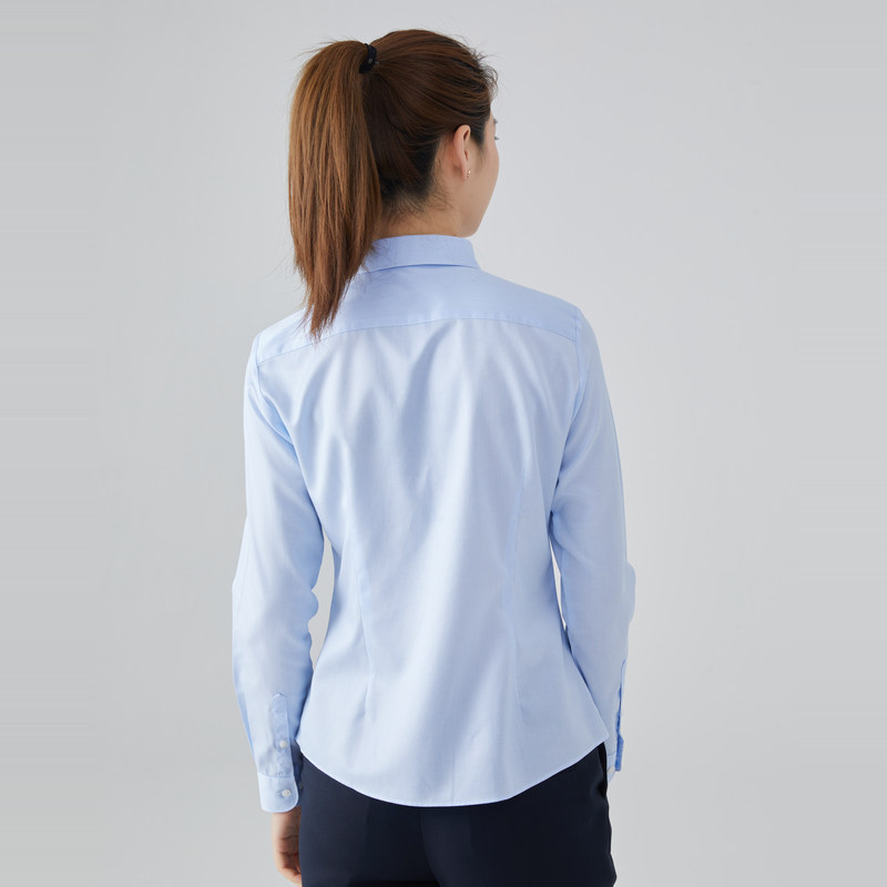 纯棉DP免烫白衬衫女定制绣LOGO春秋修身100支职业抗皱长袖衬衣