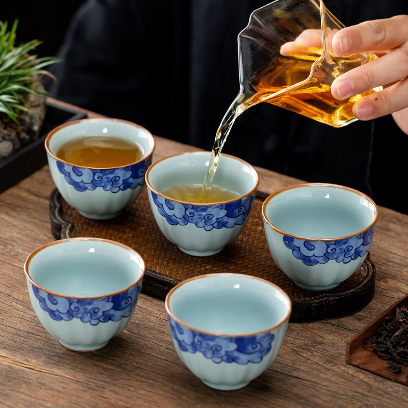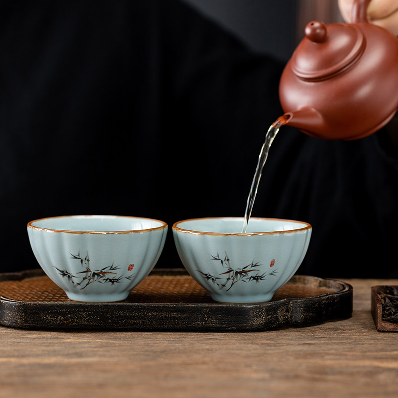 官窑可养陶瓷茶杯单杯祥云功夫茶具汝窑品茗杯开片主人杯小盏家用