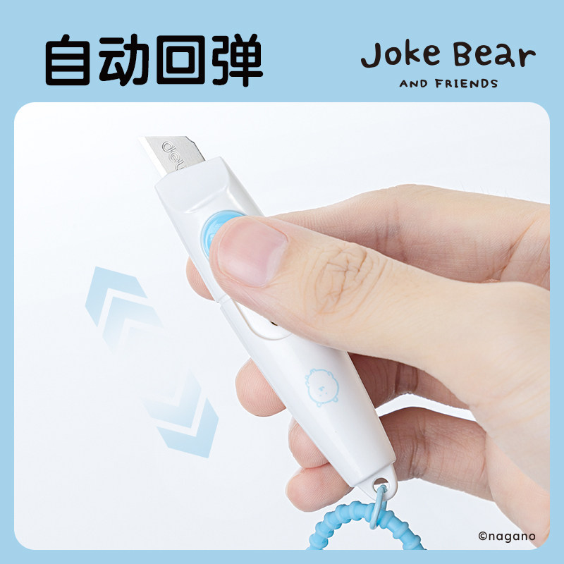 得力自嘲熊美工刀具拆快递专用开箱的小刀好物高颜值儿童学生手工手账迷你可爱小号抹苔绿快递刀清雾粉美工刀