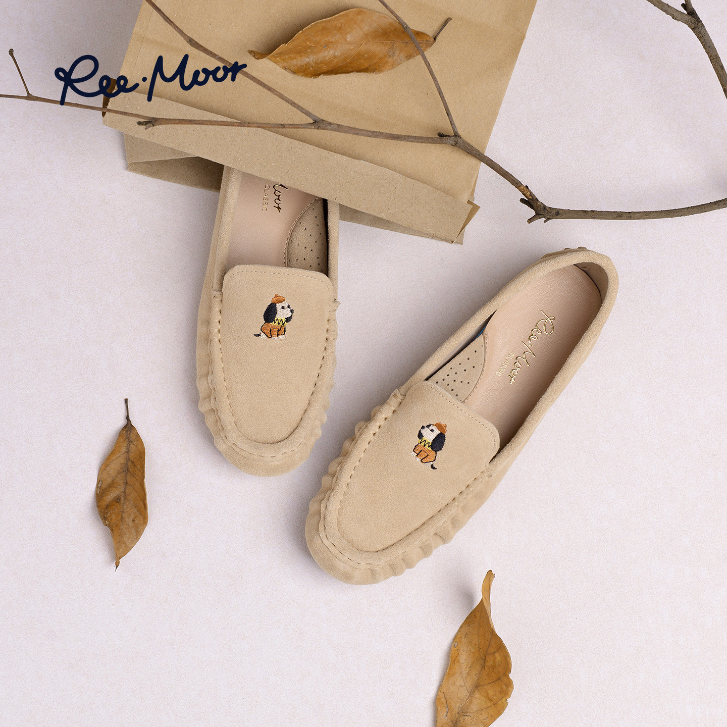 REEMOOR睿慕2026春季新款复古英伦风圆头平底一脚蹬乐福鞋女鞋