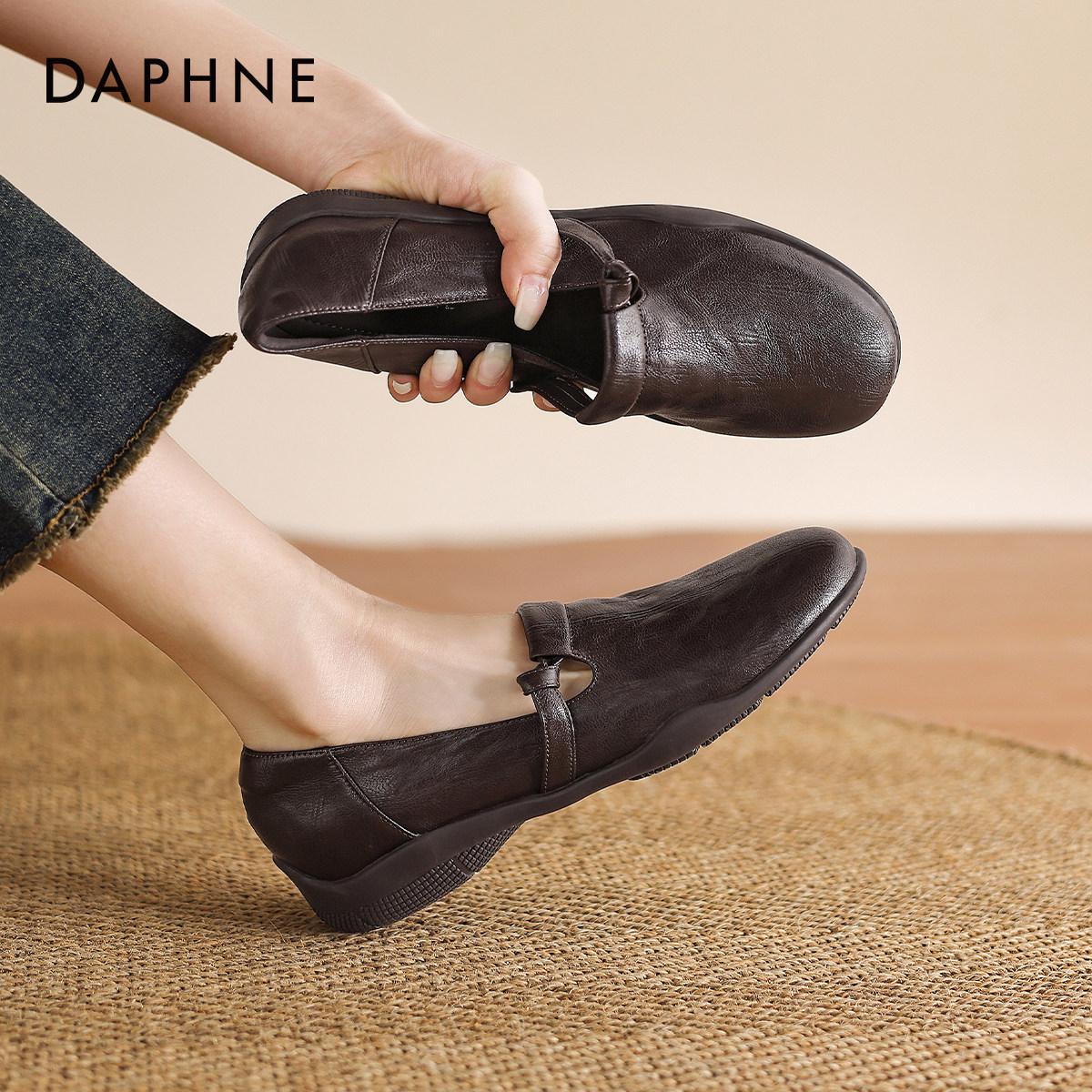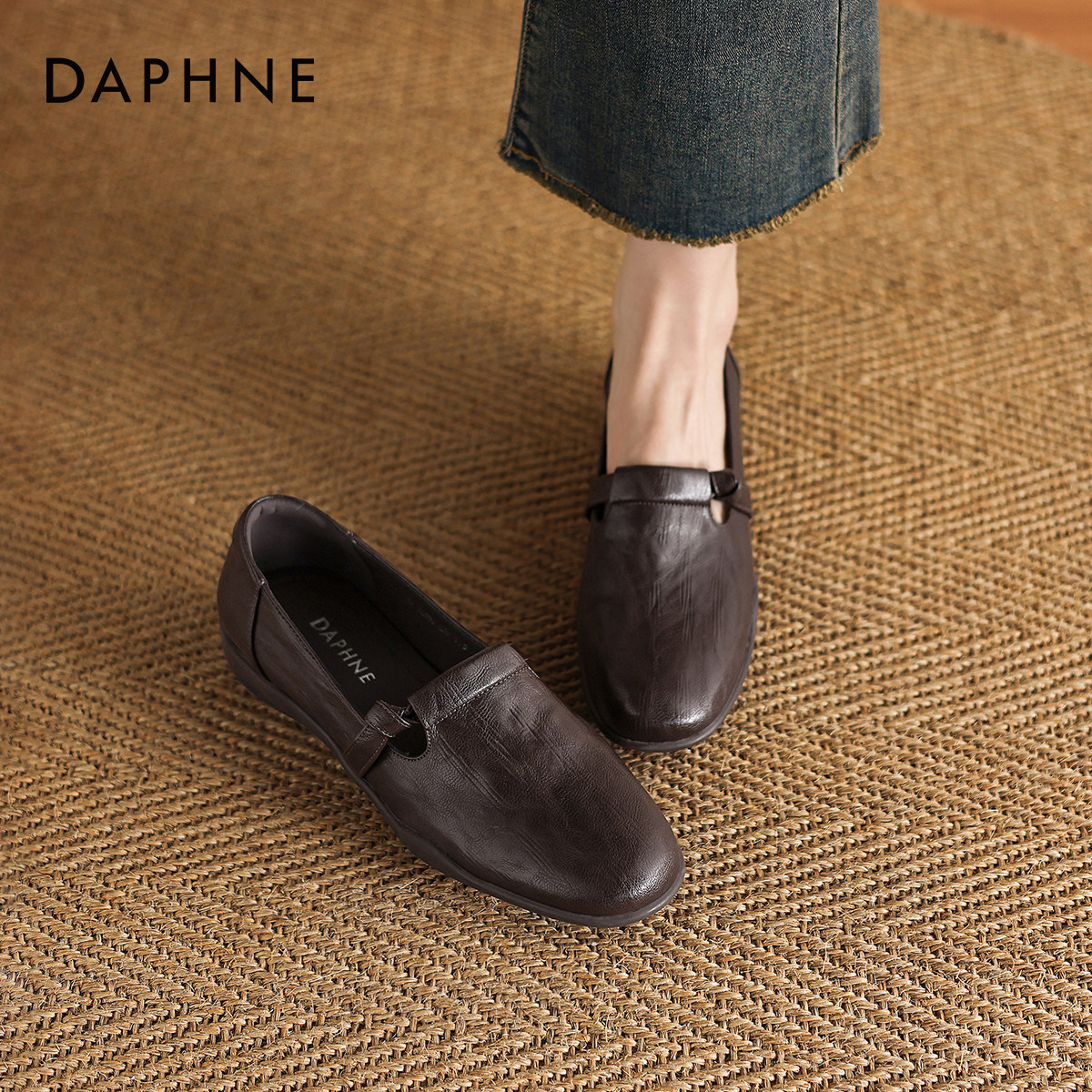 达芙妮复古乐福鞋女款2026春季新款圆头软底单鞋通勤一脚蹬小皮鞋