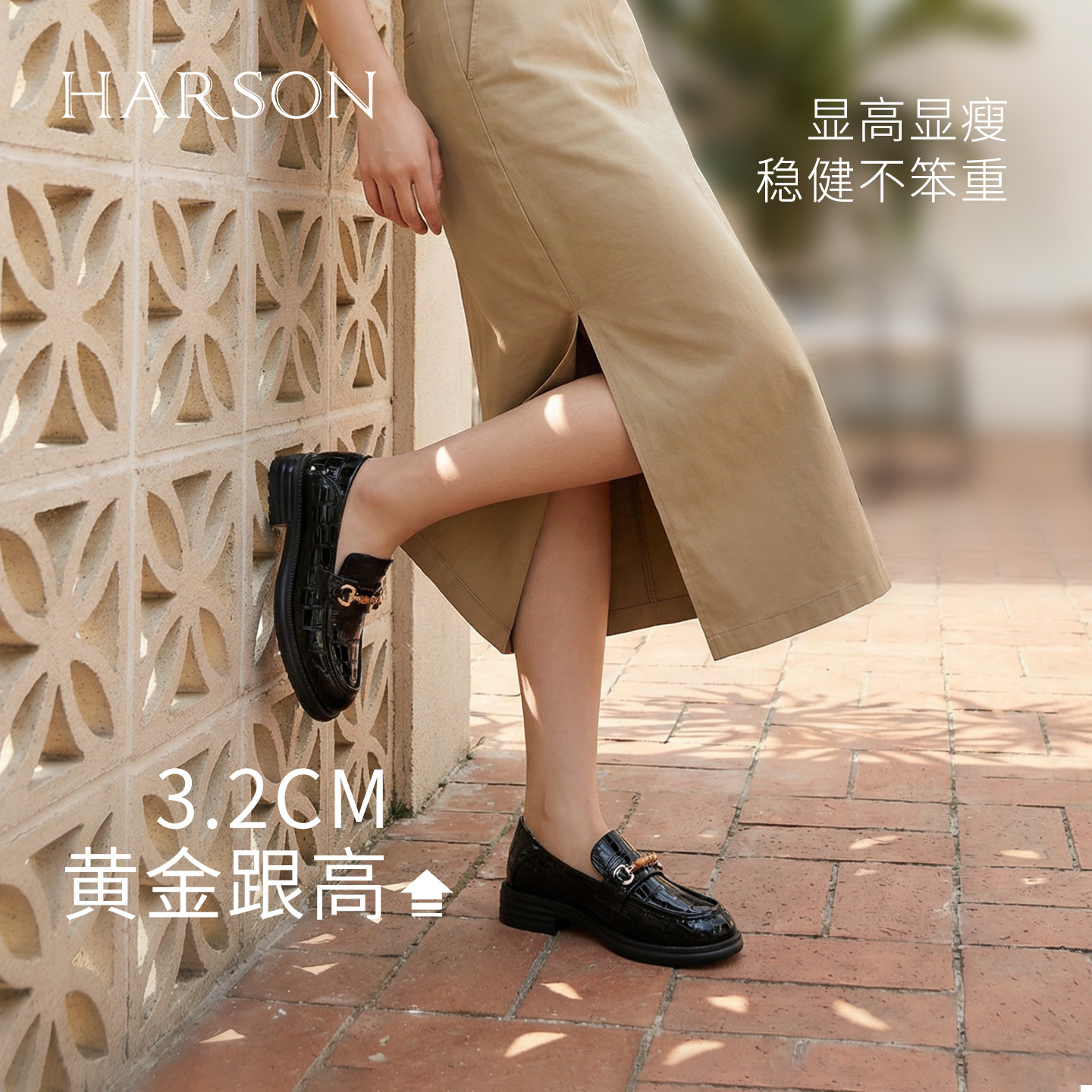哈森圆头粗跟乐福鞋女时尚竹节马衔扣小皮鞋2026春新款HWS260118