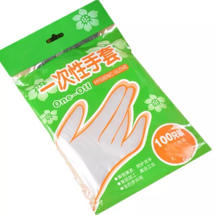 100只一次性PE手套加厚食品级餐饮塑料薄膜家用透明袋装耐用家务