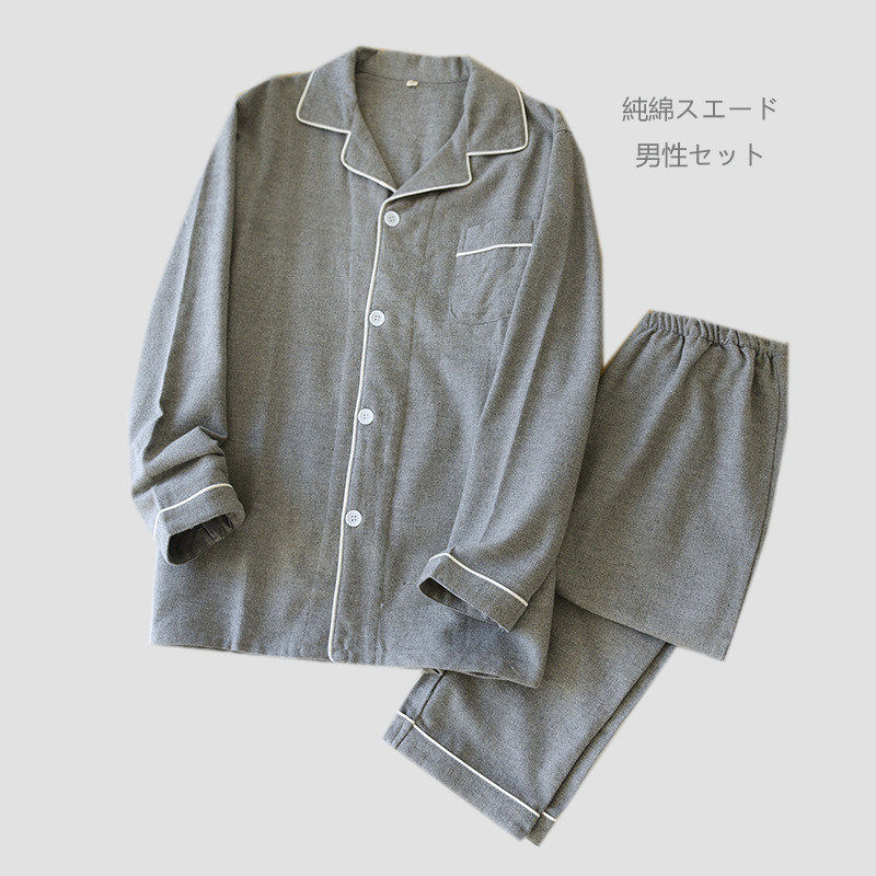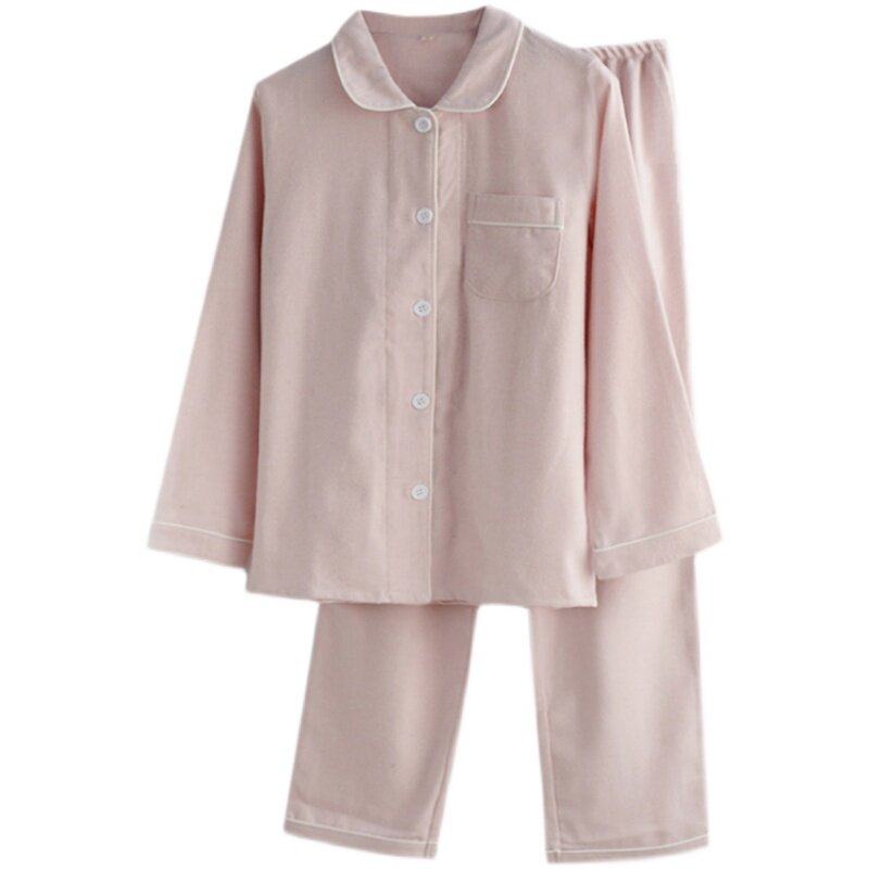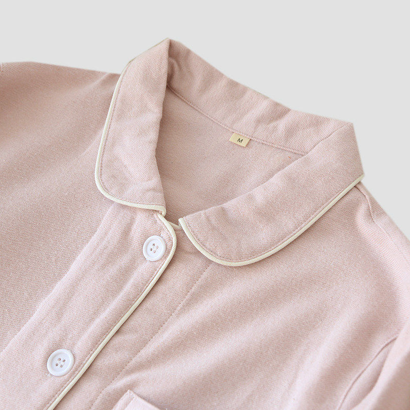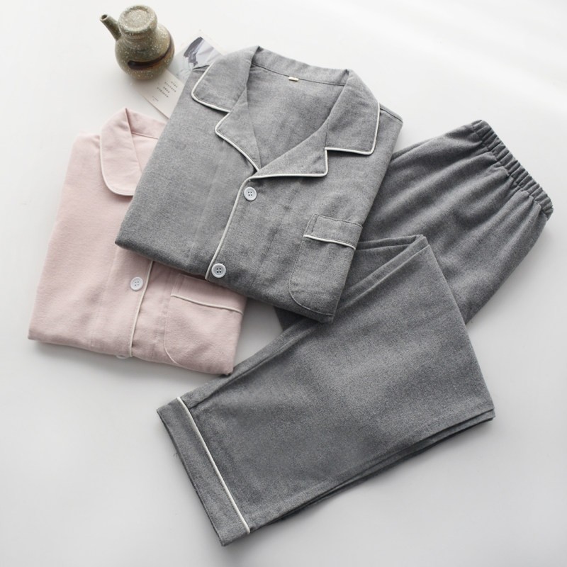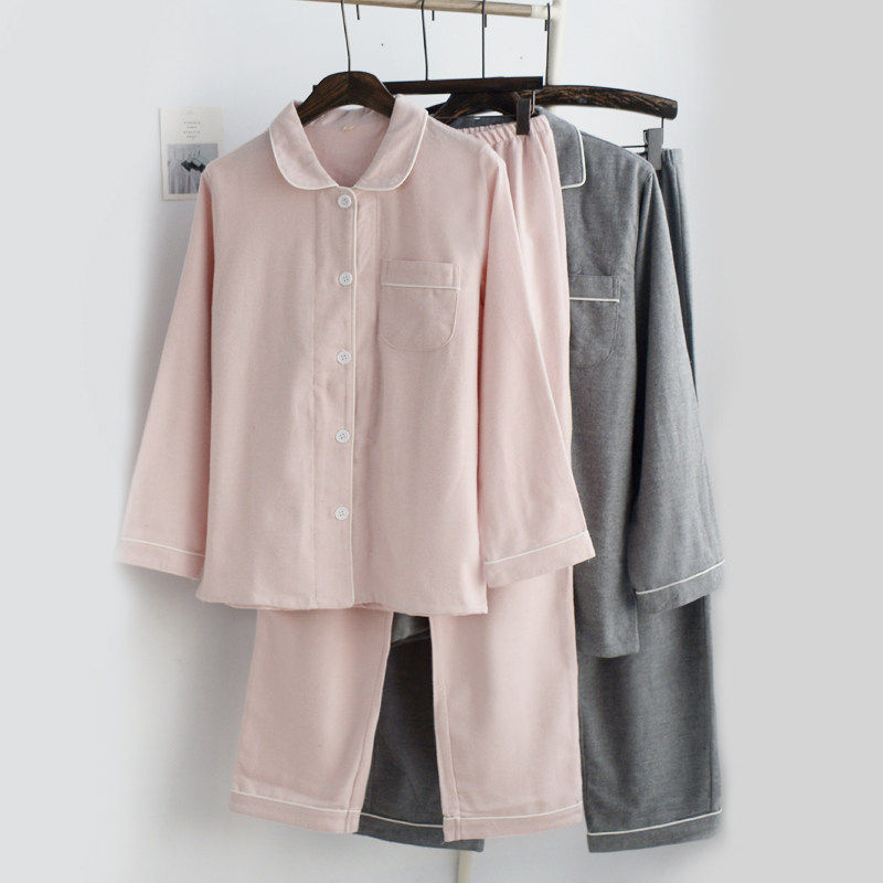 红豆日系纯色珠家美绪睡衣男女秋冬季纯棉磨毛绒布长袖情侣家居服