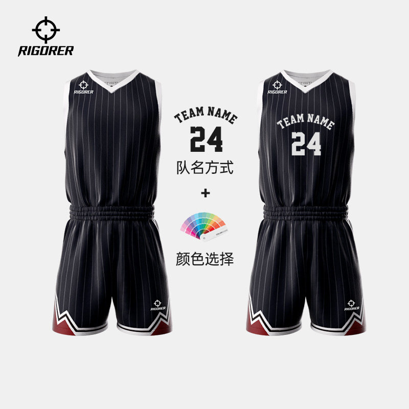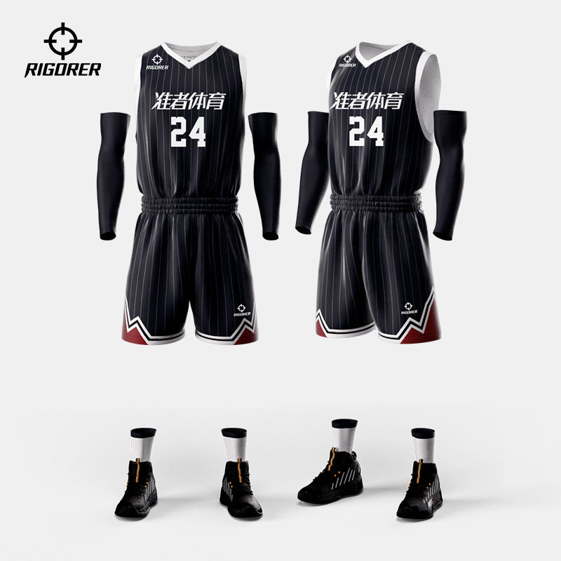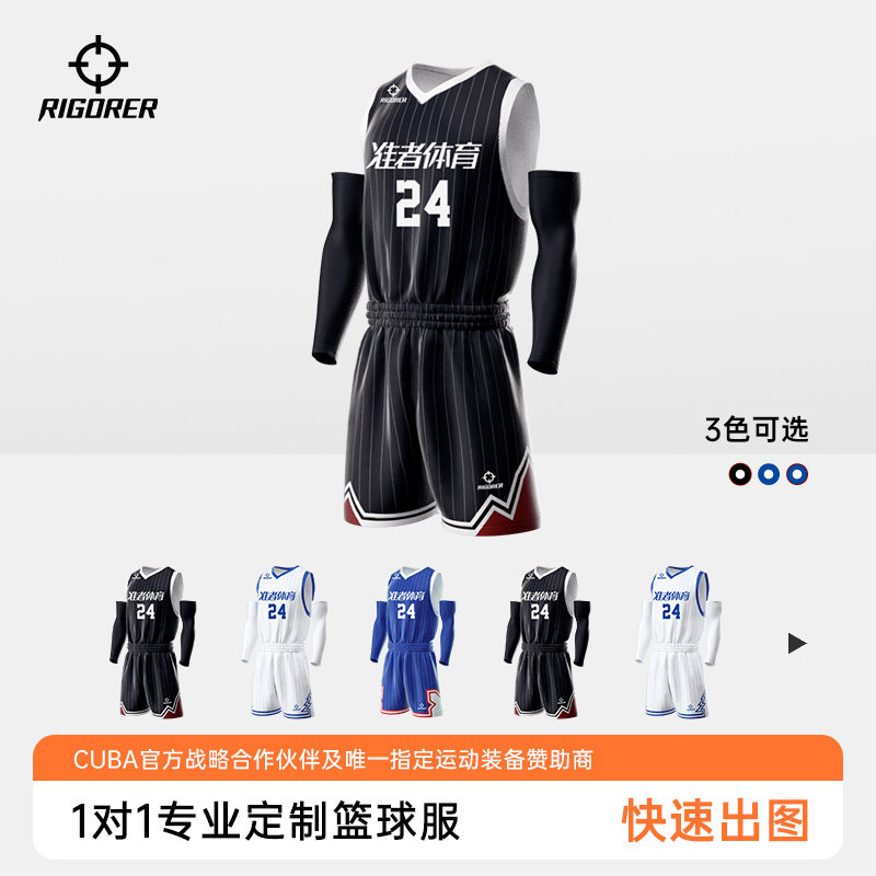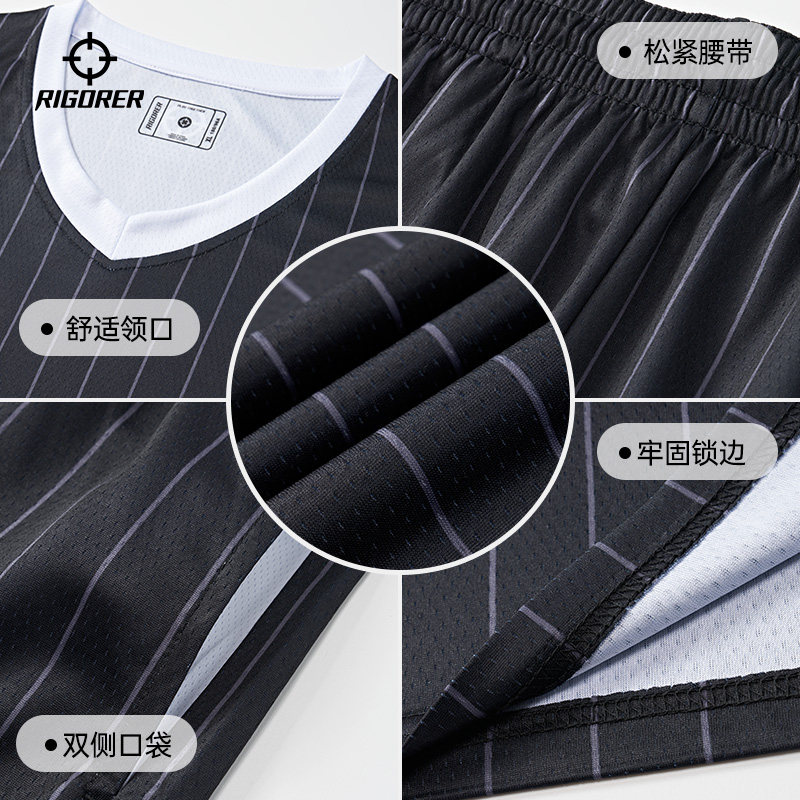 准者篮球服套装男条纹定制团购DIY数码印实战比赛训练V领透气球衣