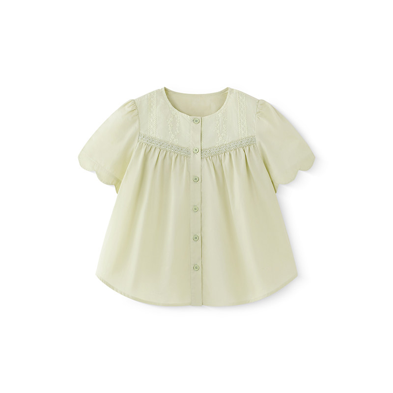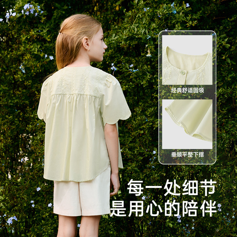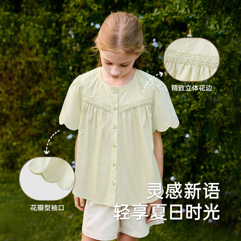 英氏儿童衬衫夏季轻薄透气宽松女童上衣可爱百搭中大童短袖衬衣