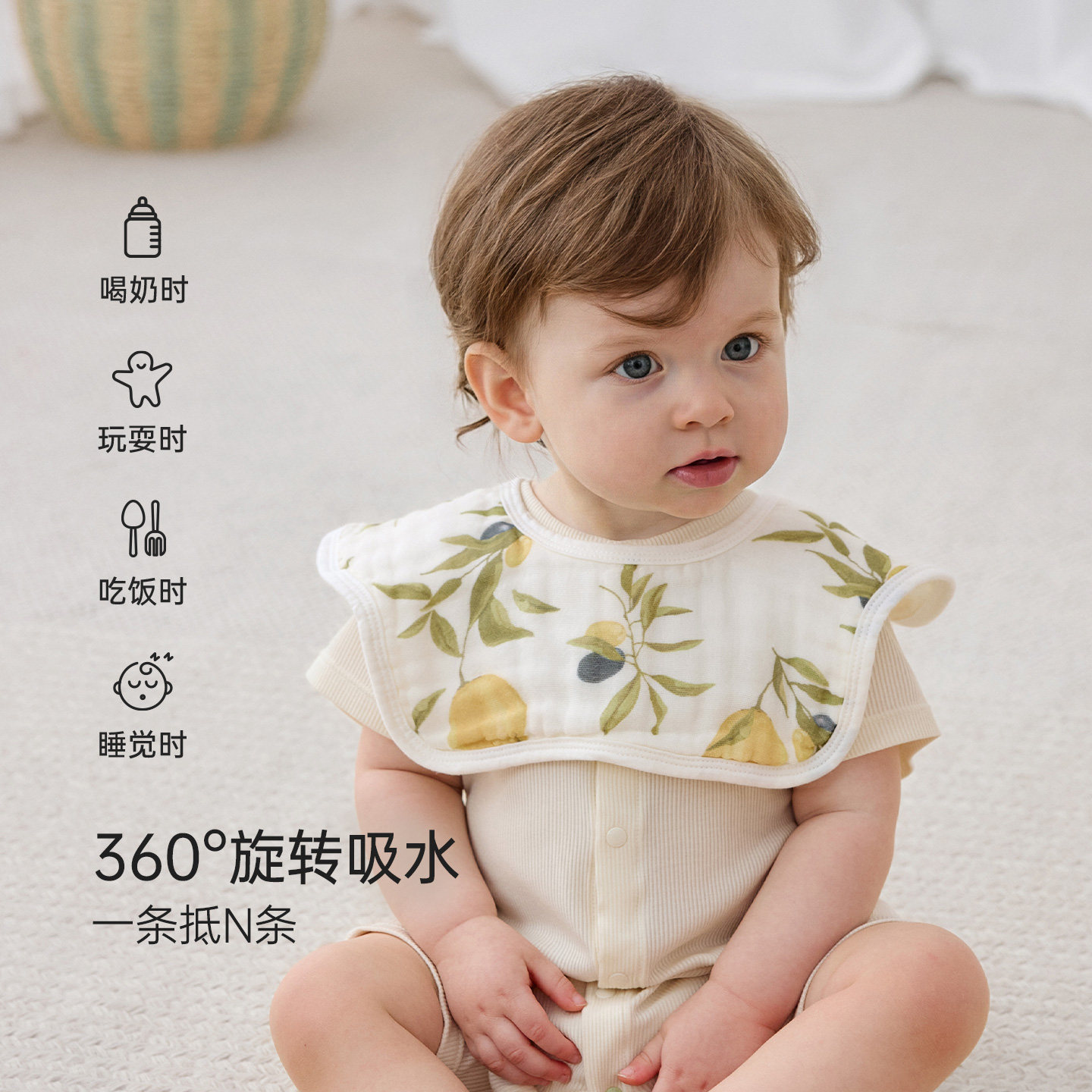 开丽新生儿花瓣围嘴纯棉透气可旋转宝宝吃饭吃奶口水巾围兜 A 类