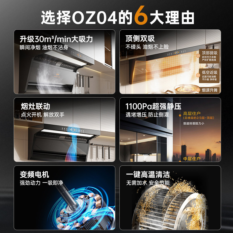 欧派(OPPEIN) 抽油烟机30m³大吸力变频电机家用厨房烟灶套装OZ04