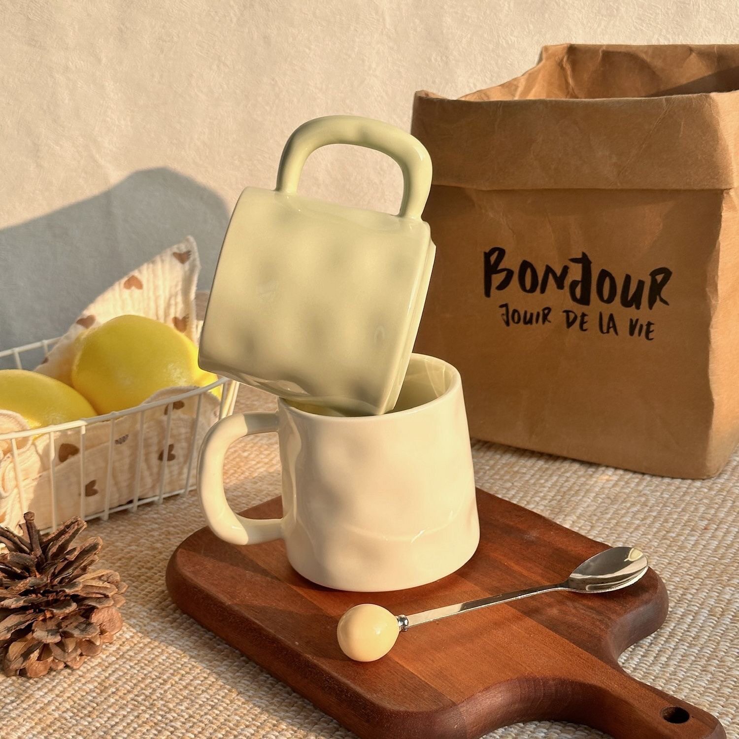 ins陶瓷杯高级感扭扭马克杯家用小众设计情侣咖啡杯女生喝水杯子
