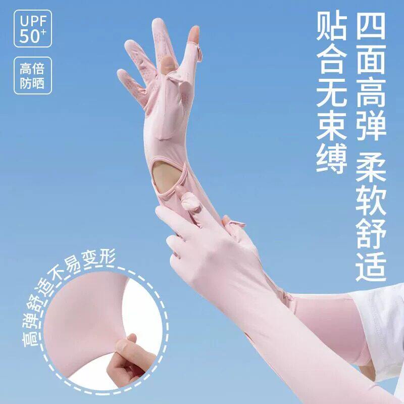 防晒手套女防紫外线冰丝露二指夏季户外电动车骑行开车手套女薄款