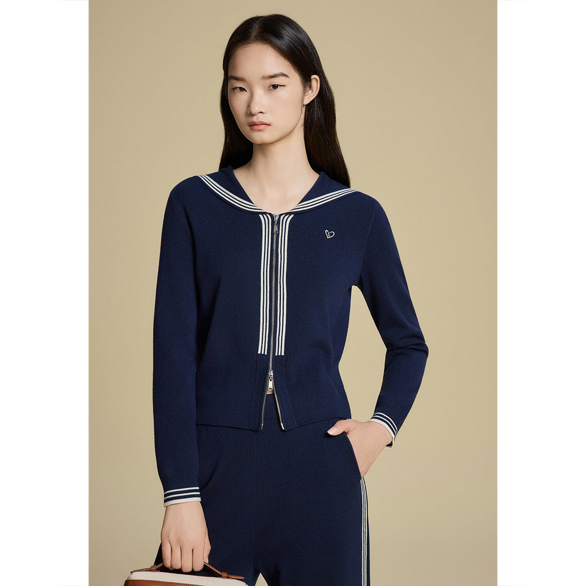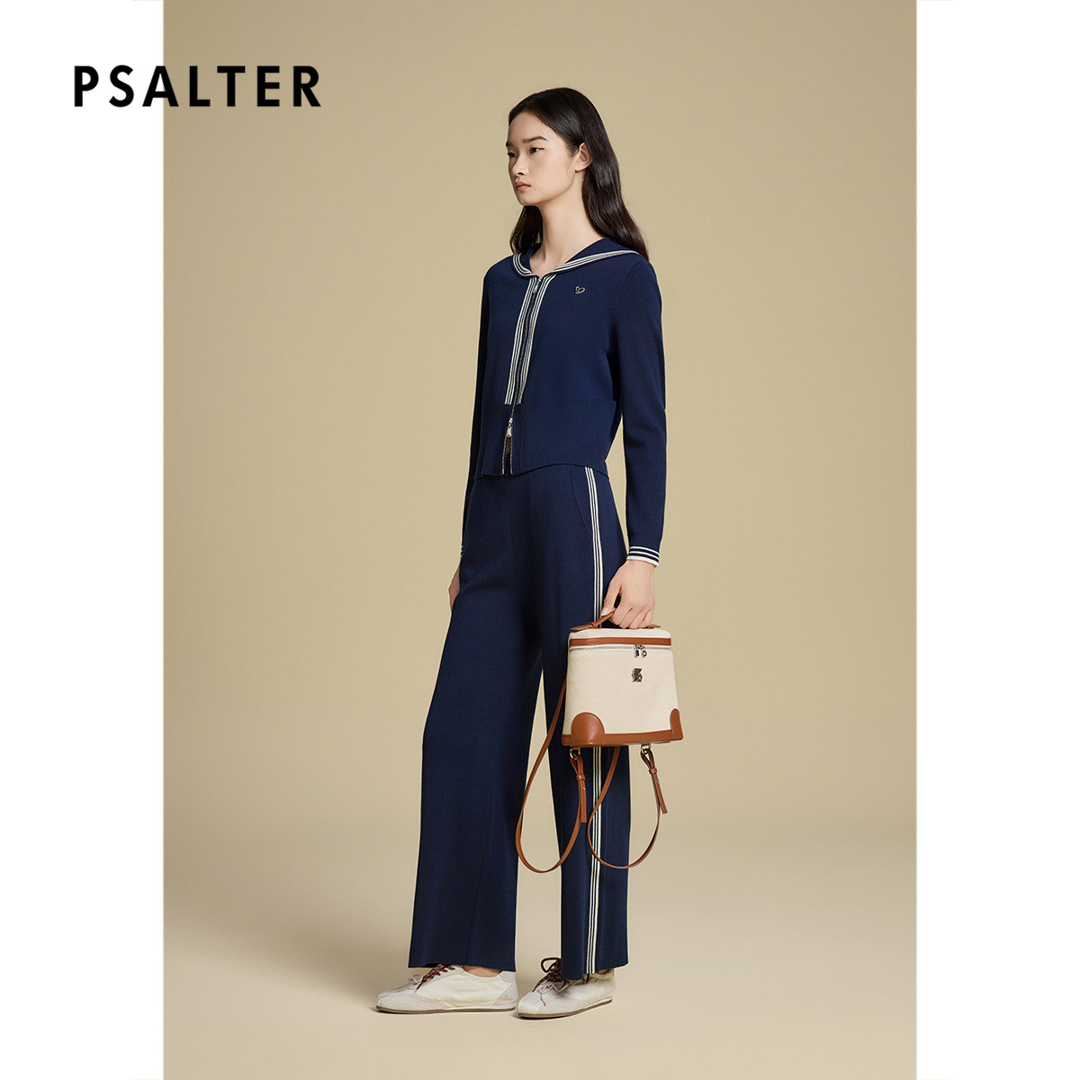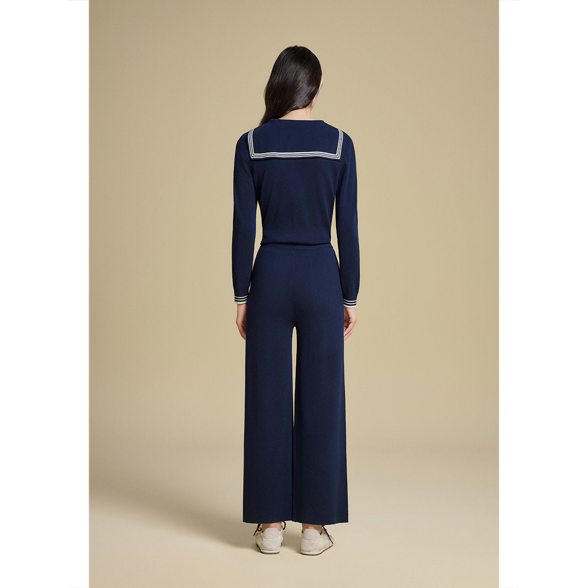 诗篇专选复古学院风海军领条纹装饰线毛针织衫2025秋款