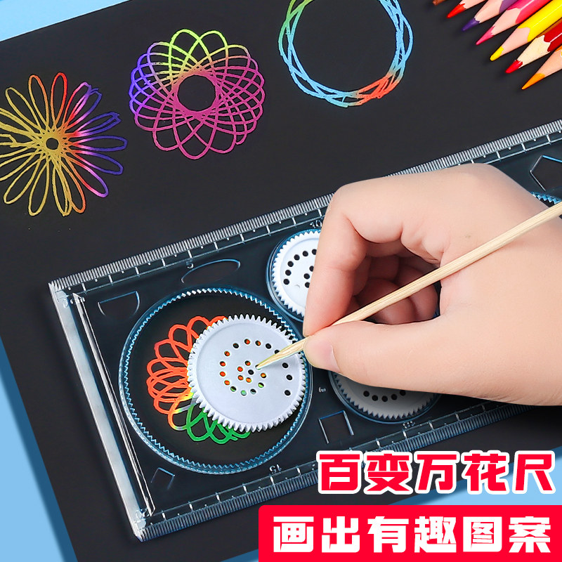 多功能尺子小学生专用百变万花尺魔幻套装儿童几何绘图模板尺手抄报尺子图形尺绘画尺画画神器多形状画花