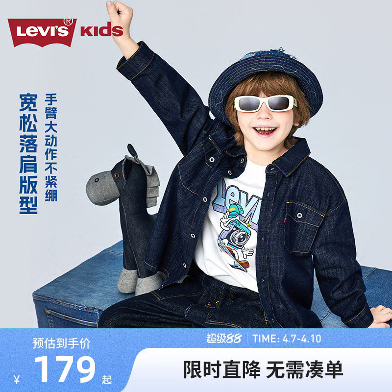 Levis李维斯儿童牛仔衬衫外套夹克2026春装新款男童女童衬衣童装