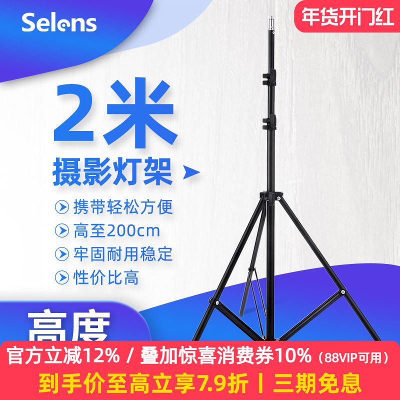 Selens/喜乐仕LED摄影灯灯架粉色闪光灯红头灯支架2米户外便携折叠三脚架夜灯伸缩杆支架直播补光灯落地支架