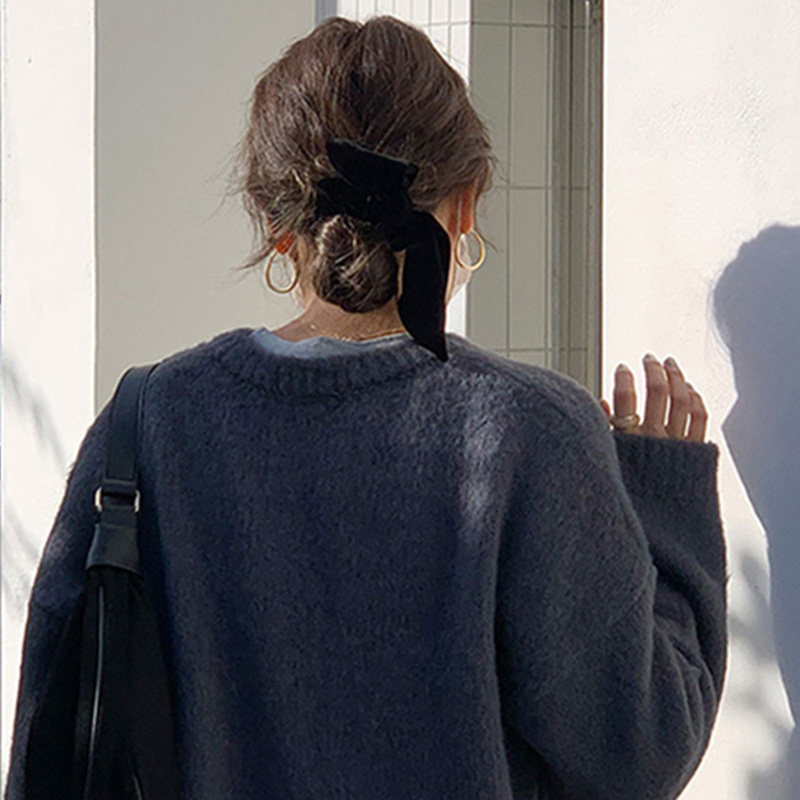 17mart韩国饰品黑色金丝绒蝴蝶结发圈气质马尾大肠圈发绳头饰头绳