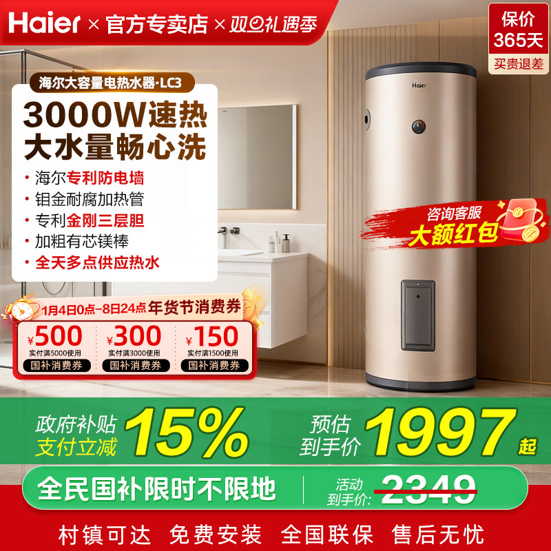 政府补贴海尔电热水器200升立式落地160L理发店竖式100L大容量LC3