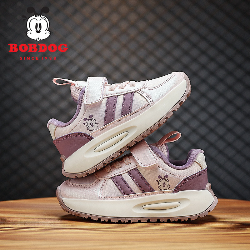 巴布豆女童棉鞋2025秋冬新款加绒保暖二棉阿甘鞋子皮面儿童运动鞋