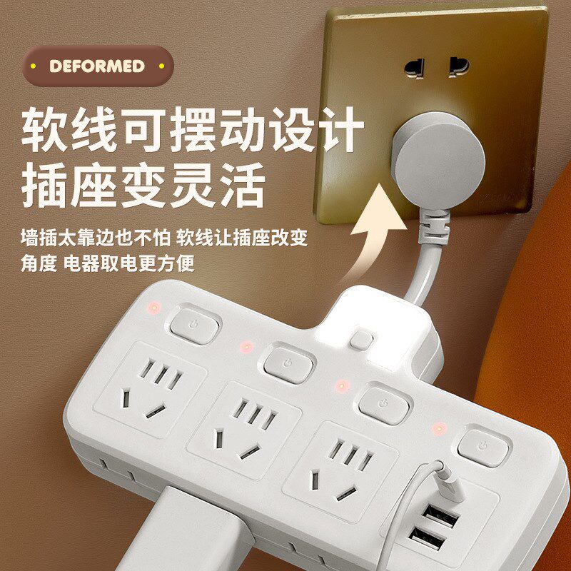 一转多插座转换器面板多孔插位无线排插插排接线板usb多功能插头