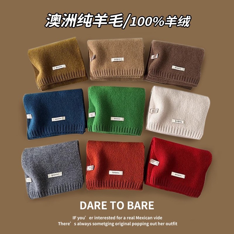 精选澳洲100%纯羊毛围巾女冬季百搭纯色披肩学生情侣加厚保暖围脖