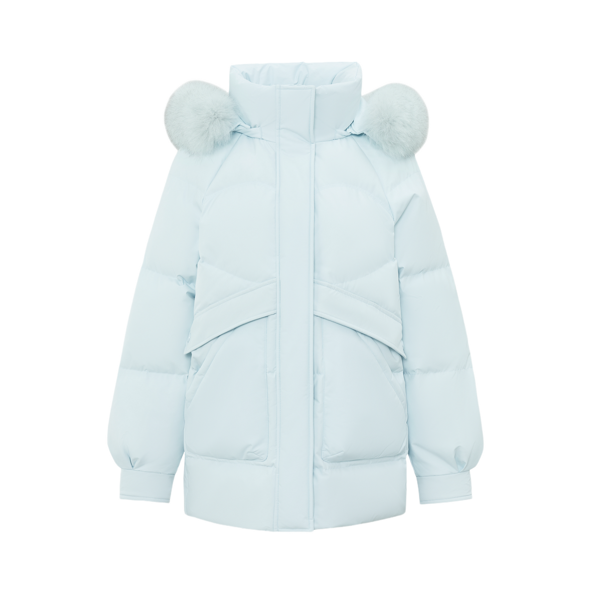 雪中飞2025冬新款女士短款重磅羽绒服狐狸毛领BABY蓝公主时尚保暖