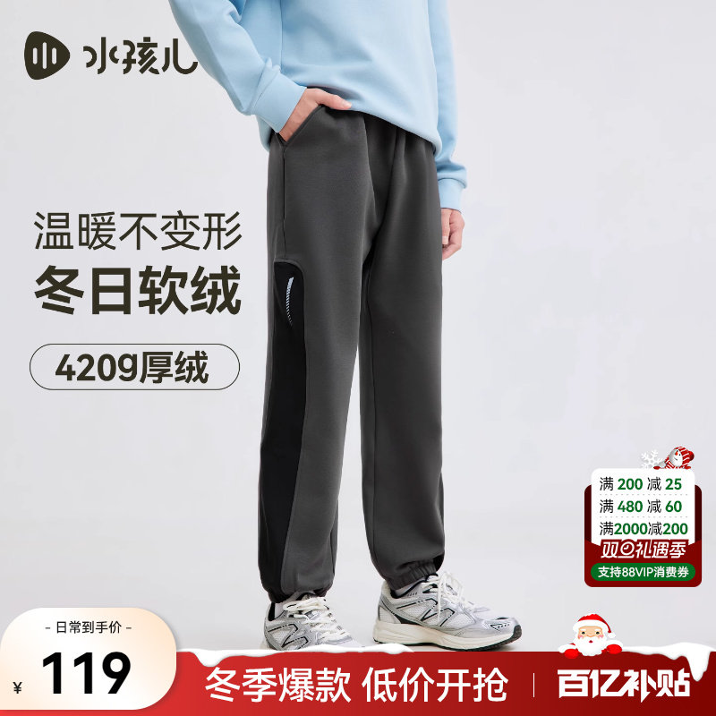 水孩儿童装加绒长裤女童2025秋冬新品男童休闲保暖裤中大童厚裤子