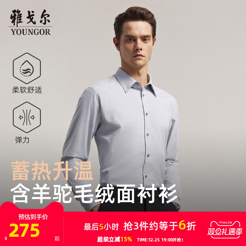 【绒面蓄热升温】雅戈尔官方秋季新品商务休闲保暖格纹长袖衬衫男