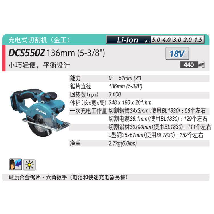 牧田(MAKITA)切割机金工 充电式小巧轻便内置工作灯 电子自动刹车