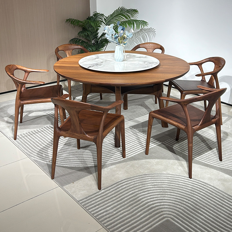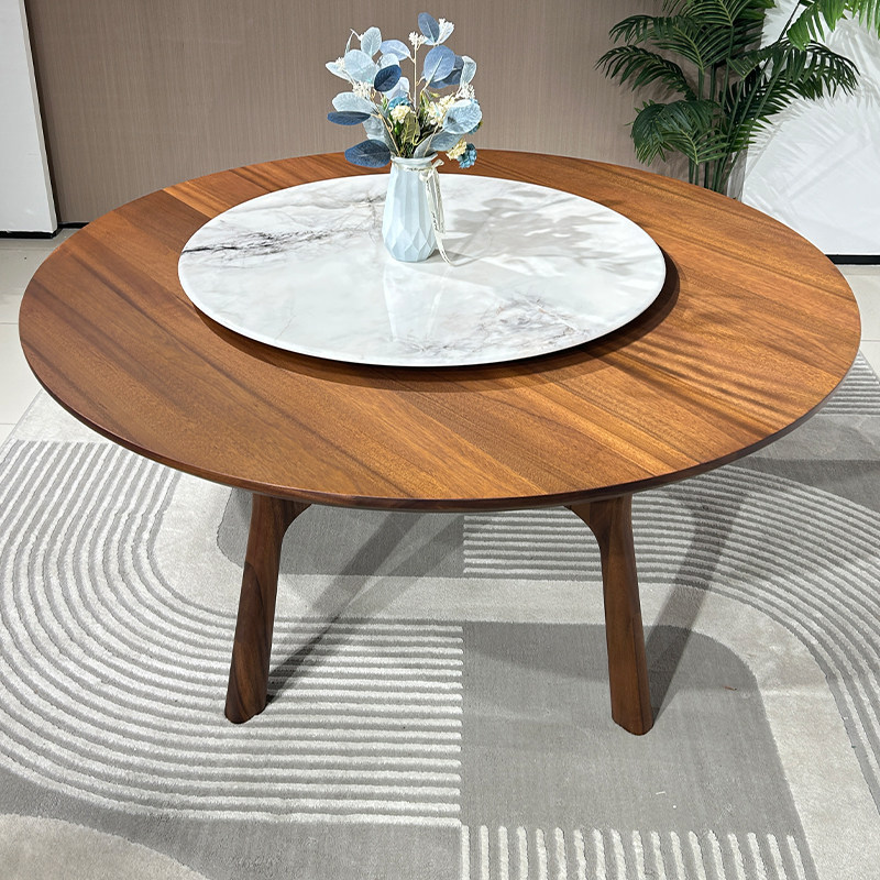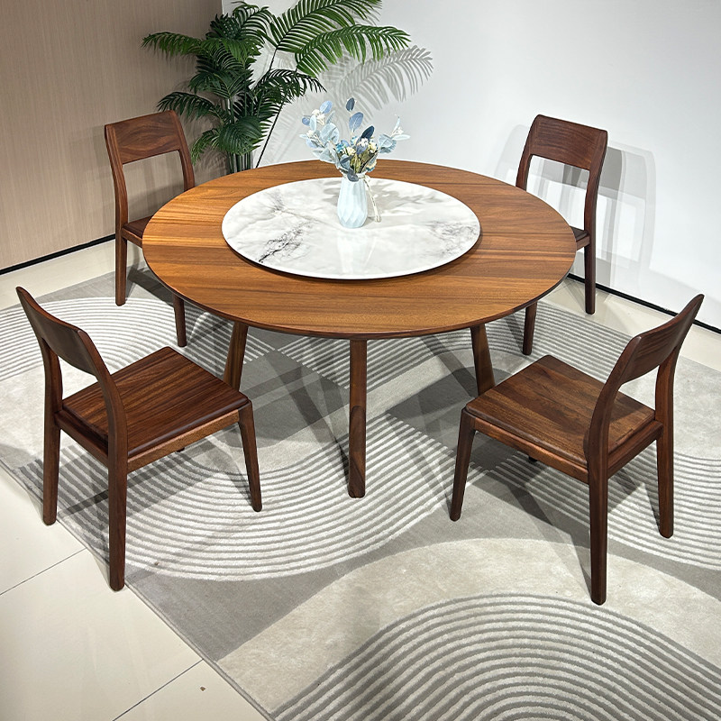 现代简约全实木圆形餐桌家用1米3圆桌带转盘1.5米吃饭桌子饭桌
