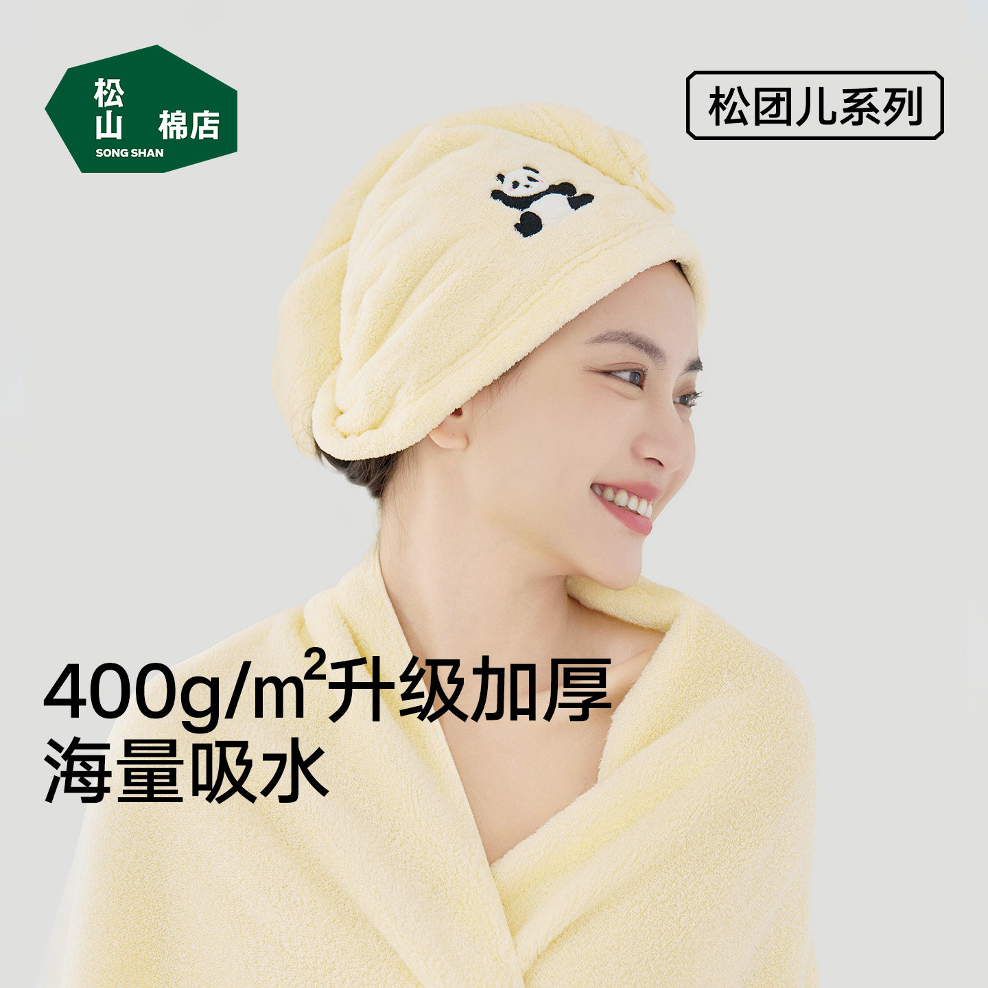 松山棉店松团儿刺绣干发帽升级加厚吸水毛巾擦头发干发巾