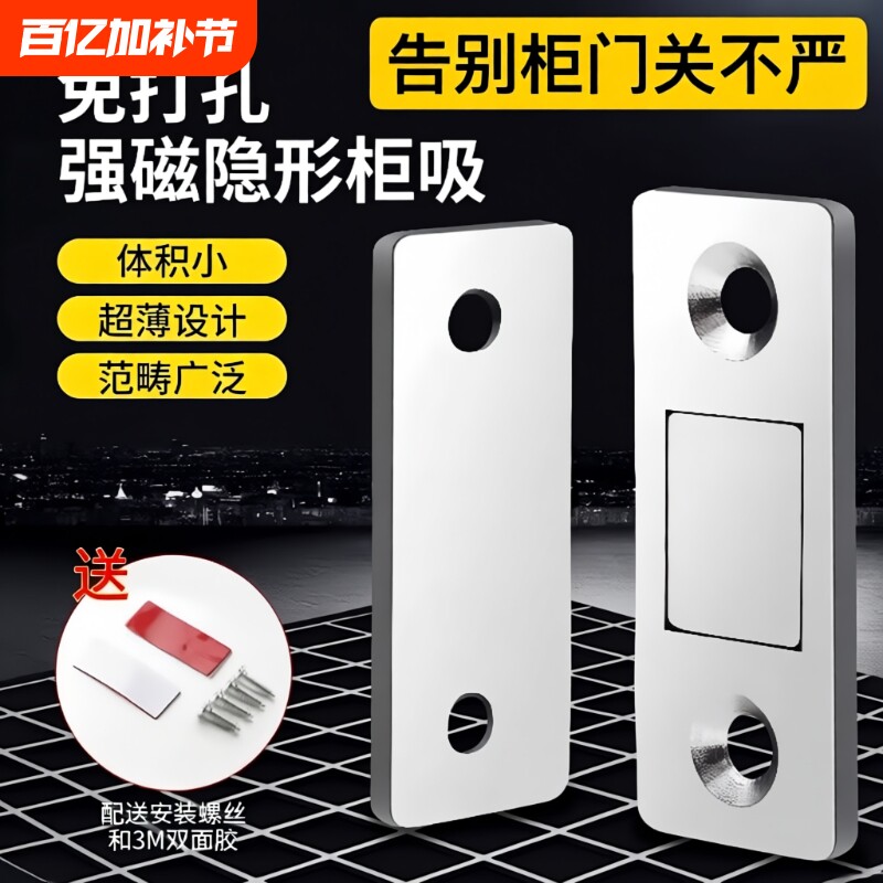 衣柜门磁吸贴片门扣免打孔隐形推拉门抽屉吸合器强磁门关不紧神器