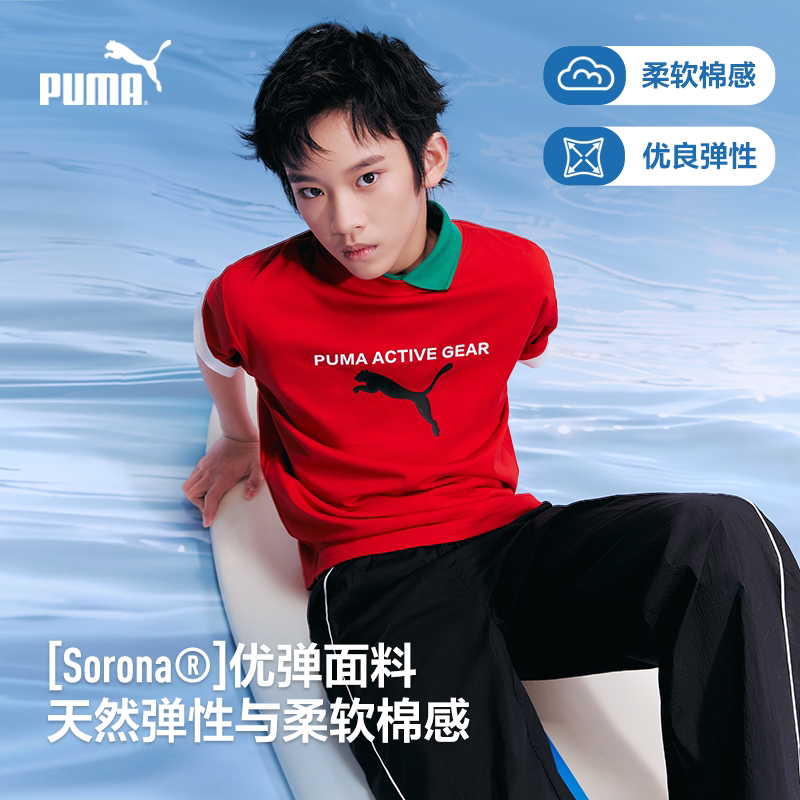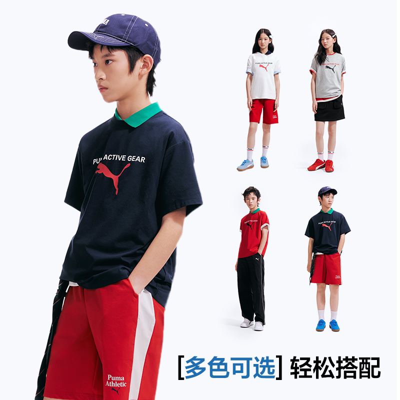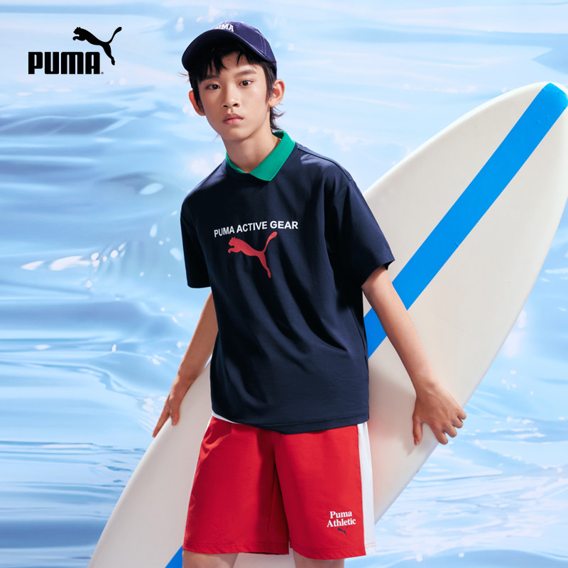 PUMA彪马童装儿童男童吸湿T恤大童衣服速干短袖运动宽松圆领百补