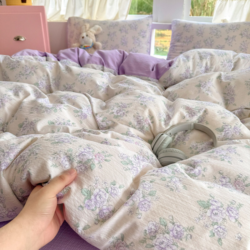 A类双层纱床上四件套纯棉全棉2025新款田园风被套宿舍床单三件套4