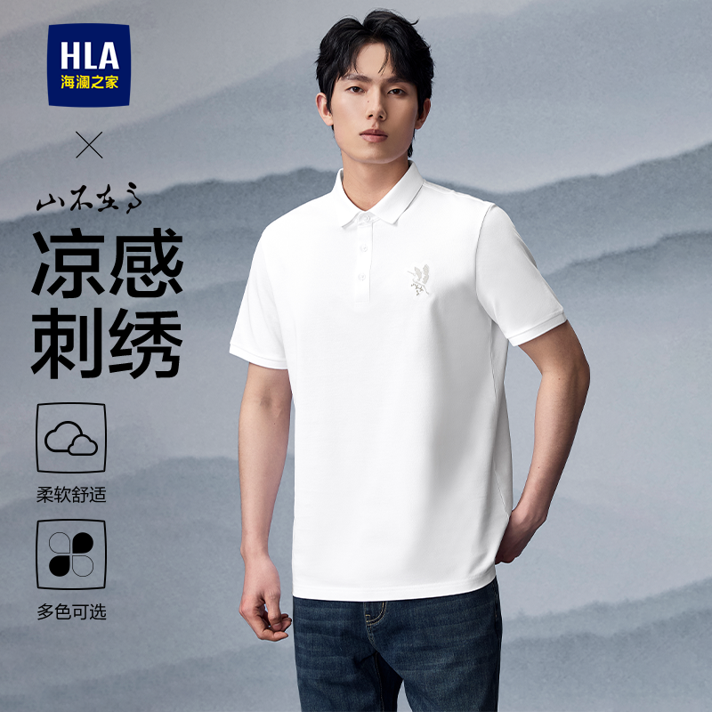 HLA/海澜之家山不在高凉感短袖POLO衫25春夏新大码刺绣翻领T恤男
