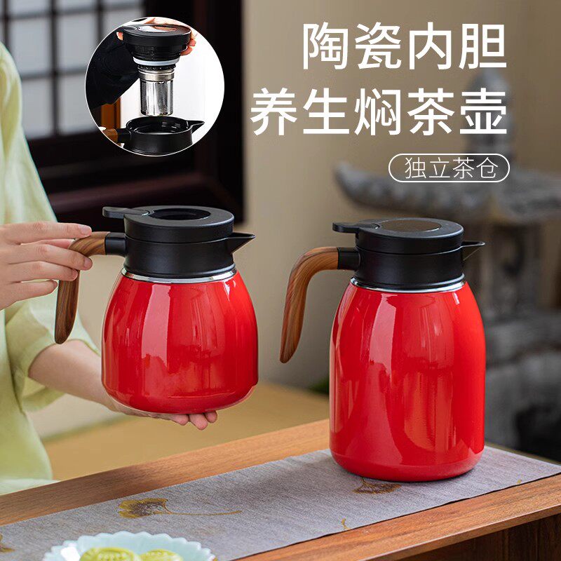 陶瓷内胆智能温显纯钛焖茶壶保温壶316不锈钢焖泡保温壶茶水分离