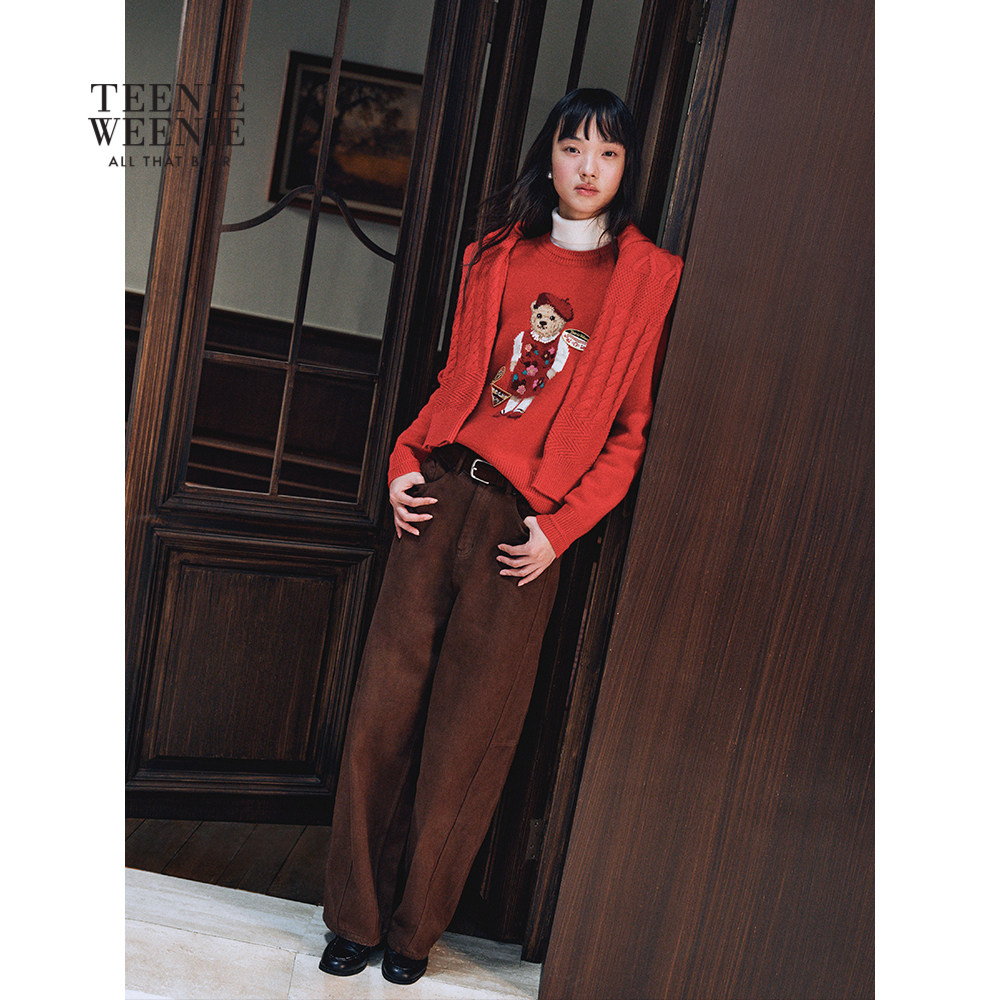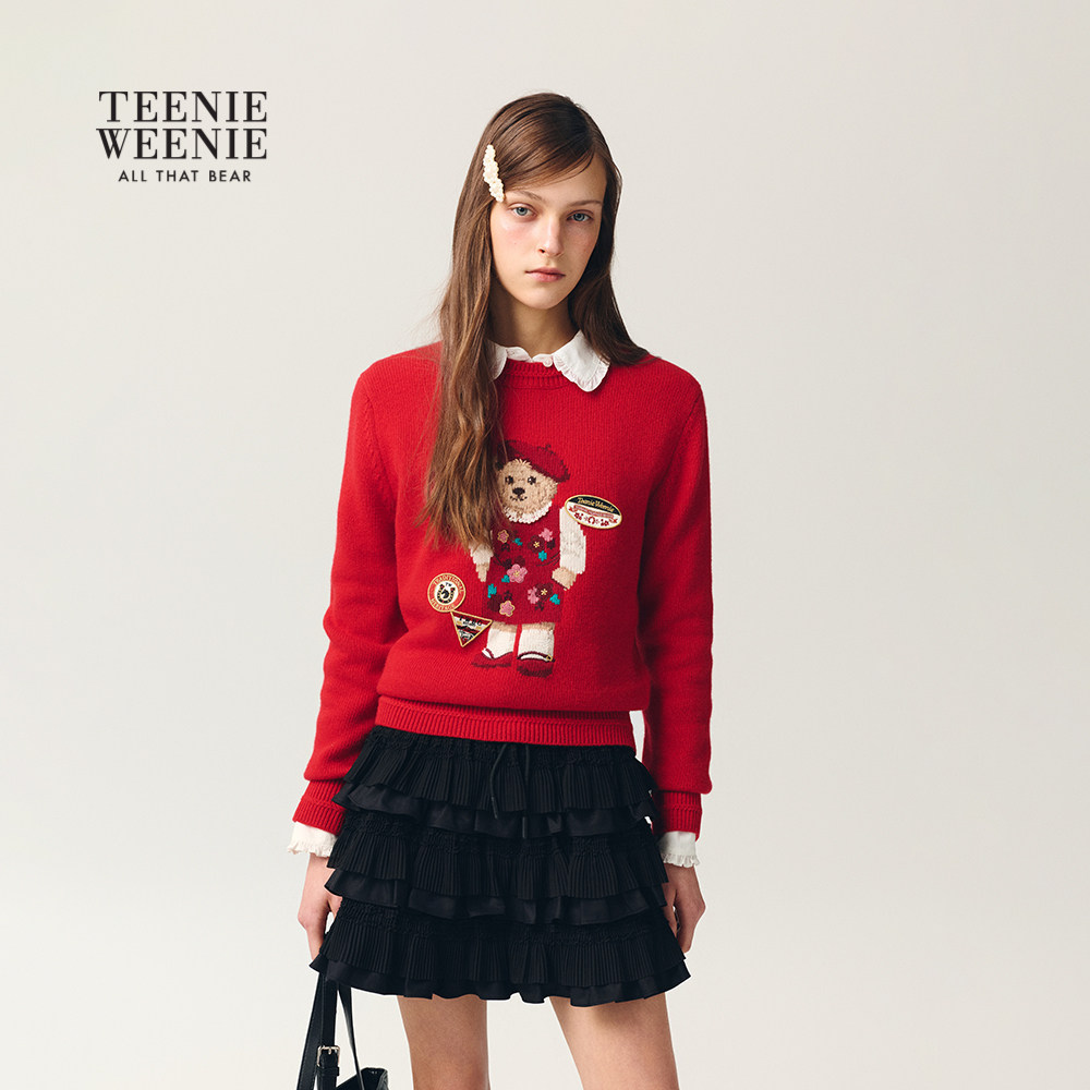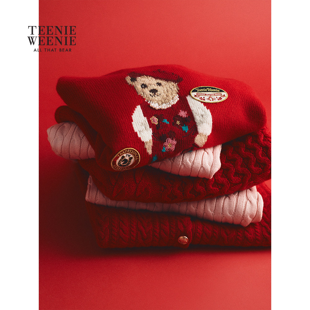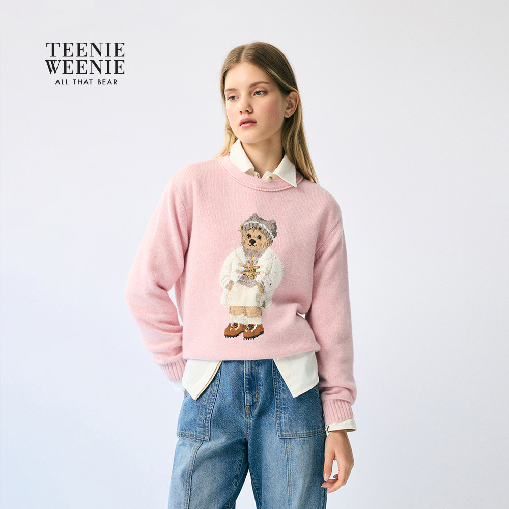 TeenieWeenie小熊女装毛针织衫26春新款新年氛围大熊提花圆领毛衣