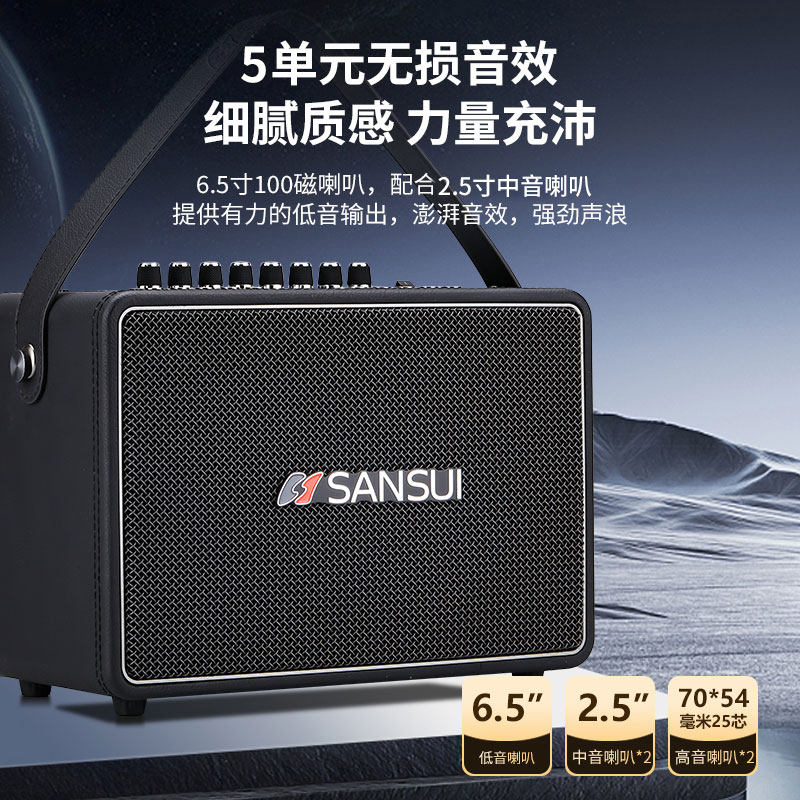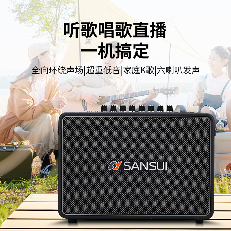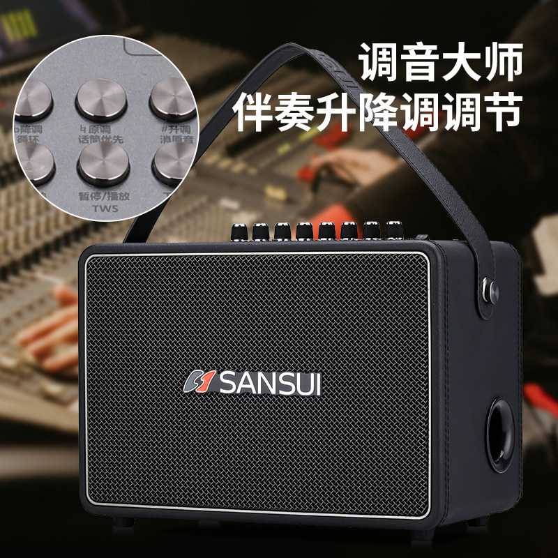 山水X600便携蓝牙音箱家用K唱歌高音质户外广场舞声卡音响一体机