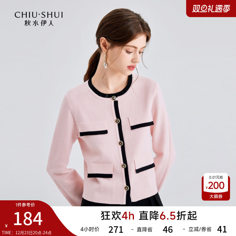 秋水伊人白色小香风针织衫女2025秋冬新款女装外套毛衣圆领上衣
